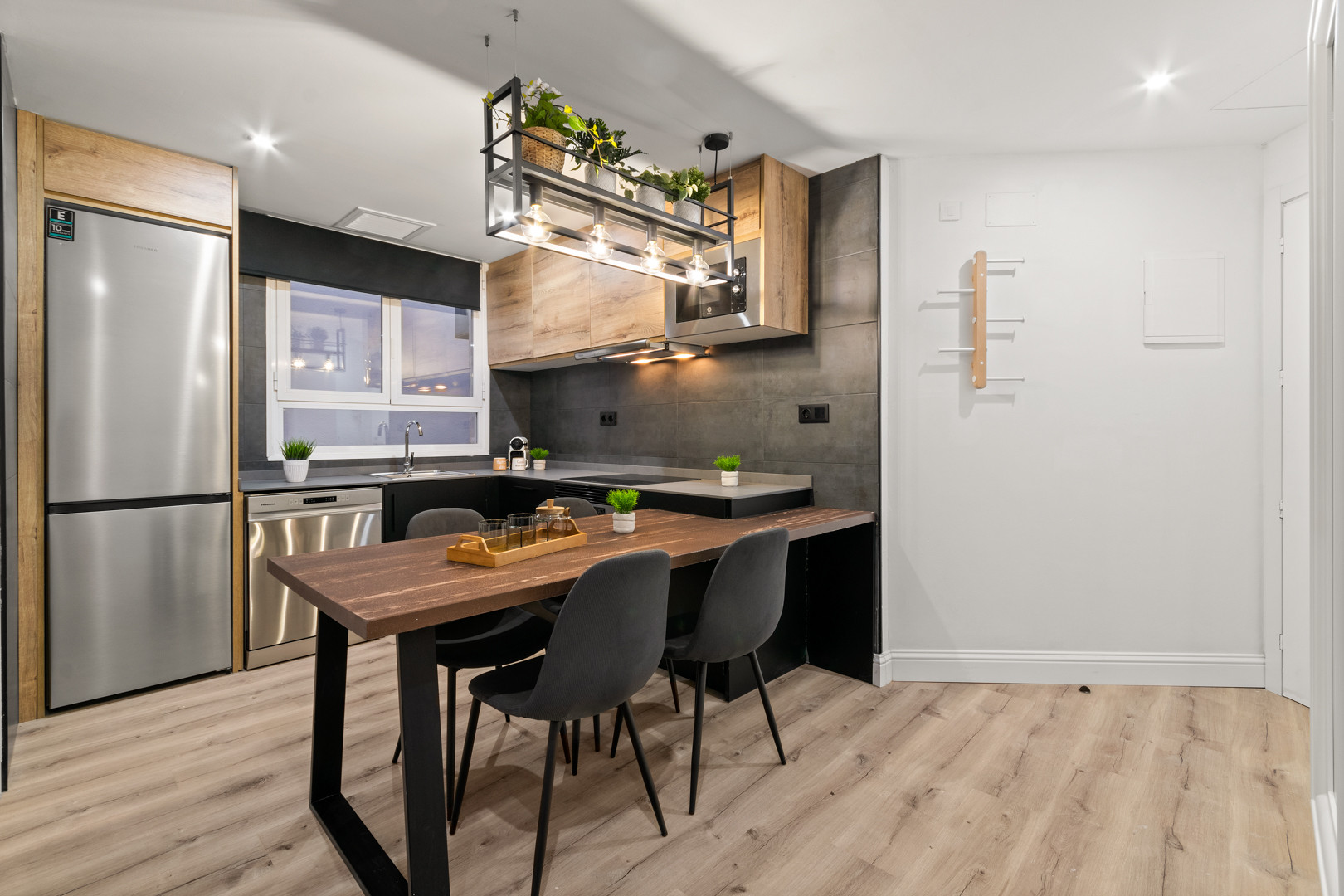 Al entrar, inmediatamente se sentirá como en casa en el ambiente cálido y acogedor de este espacio pequeño pero cuidadosamente diseñado. La cocina abierta se integra perfectamente con la sala de estar, creando un ambiente acogedor donde puedes preparar comidas mientras conversas con tus seres queridos o te relajas después de un día de exploración.