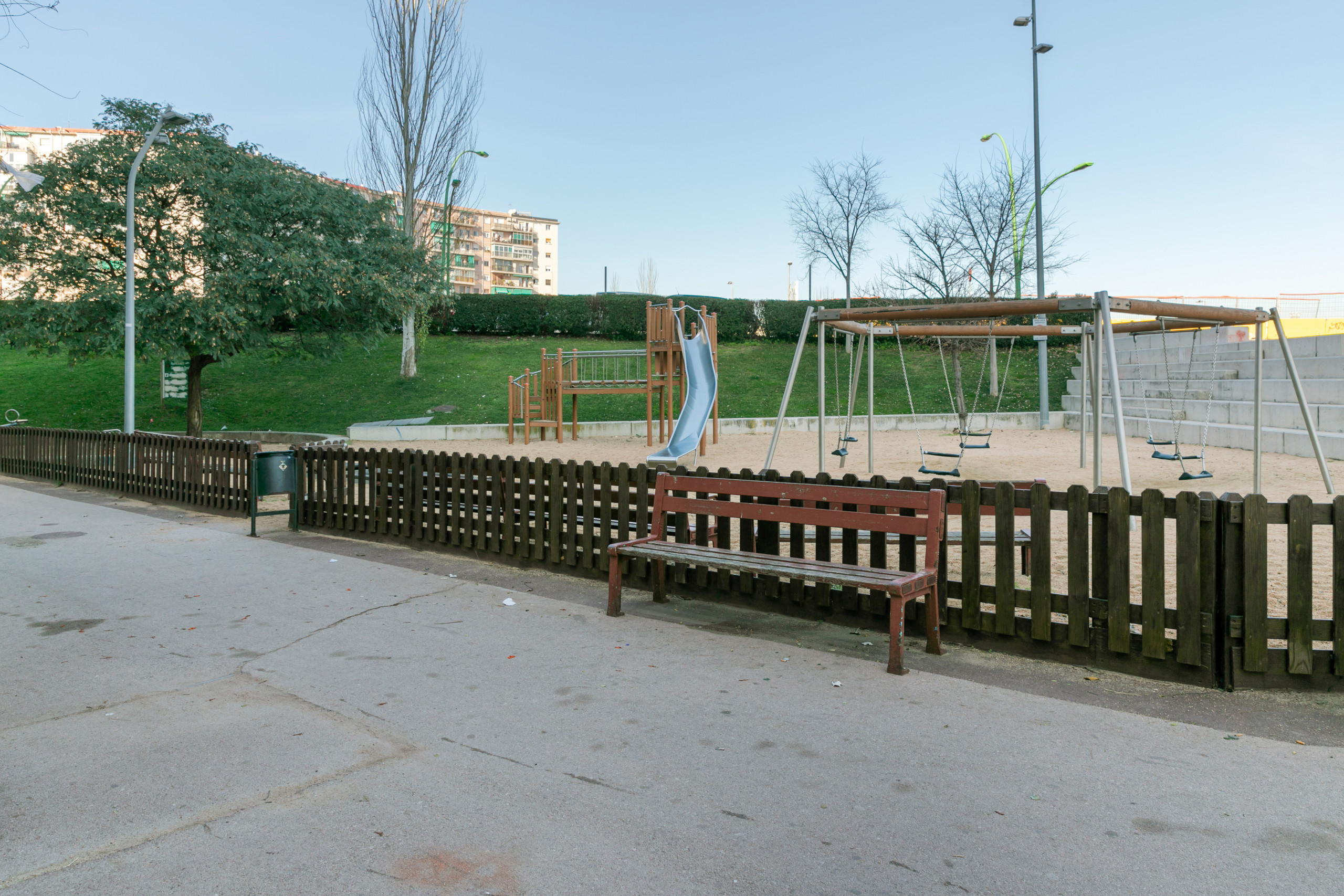 El piso dispone de plancha y mesa de planchar, lavadora y tendedero.